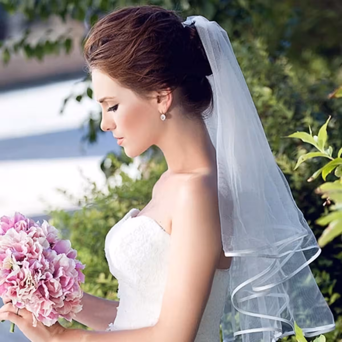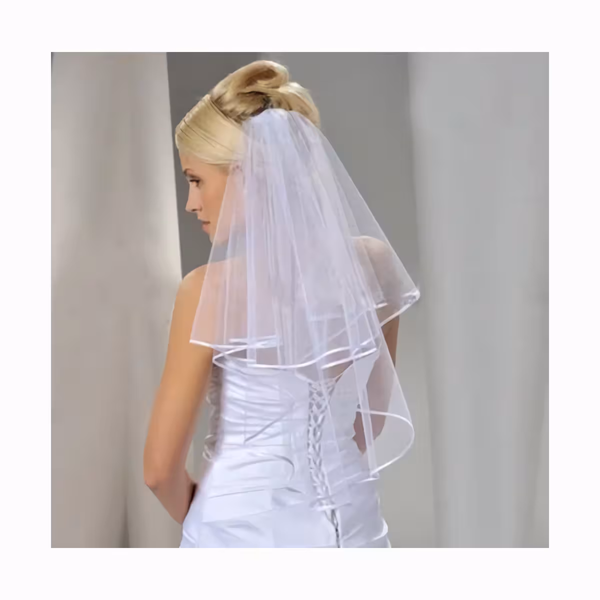 Odaberite ovaj kratki ili srednji bijeli vel od tule za klasičan, ali moderan izgled koji će privući sve poglede na vaš veliki dan.