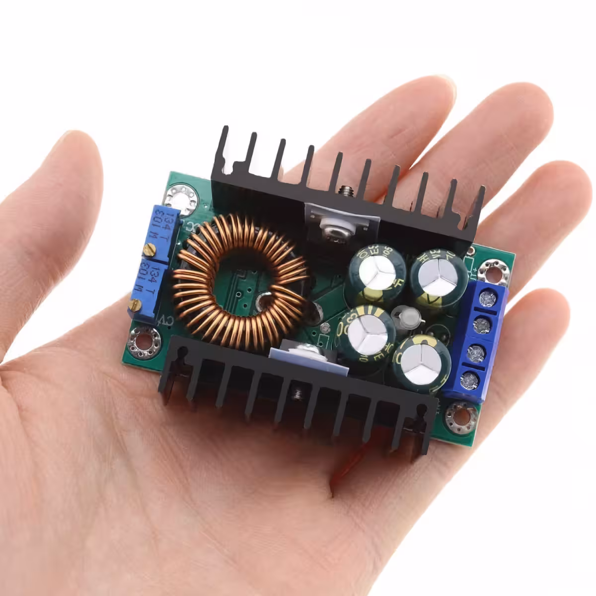 Ovaj DC-DC Step Down modul idealan je za snižavanje napona od 5V do 40V, s maksimalnom strujom od 9A. Podesiv je i po naponu (1.2-35V) i po struji (0.2-9A), pružajući učinkovito i precizno rješenje za napajanje raznih elektroničkih uređaja.