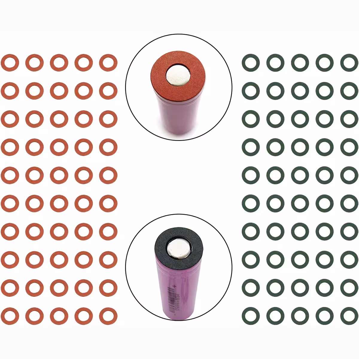 Izolacijski papir za Li-Ion bateriju 18650 – set od 100 komada (50 zelenih + 50 crvenih)