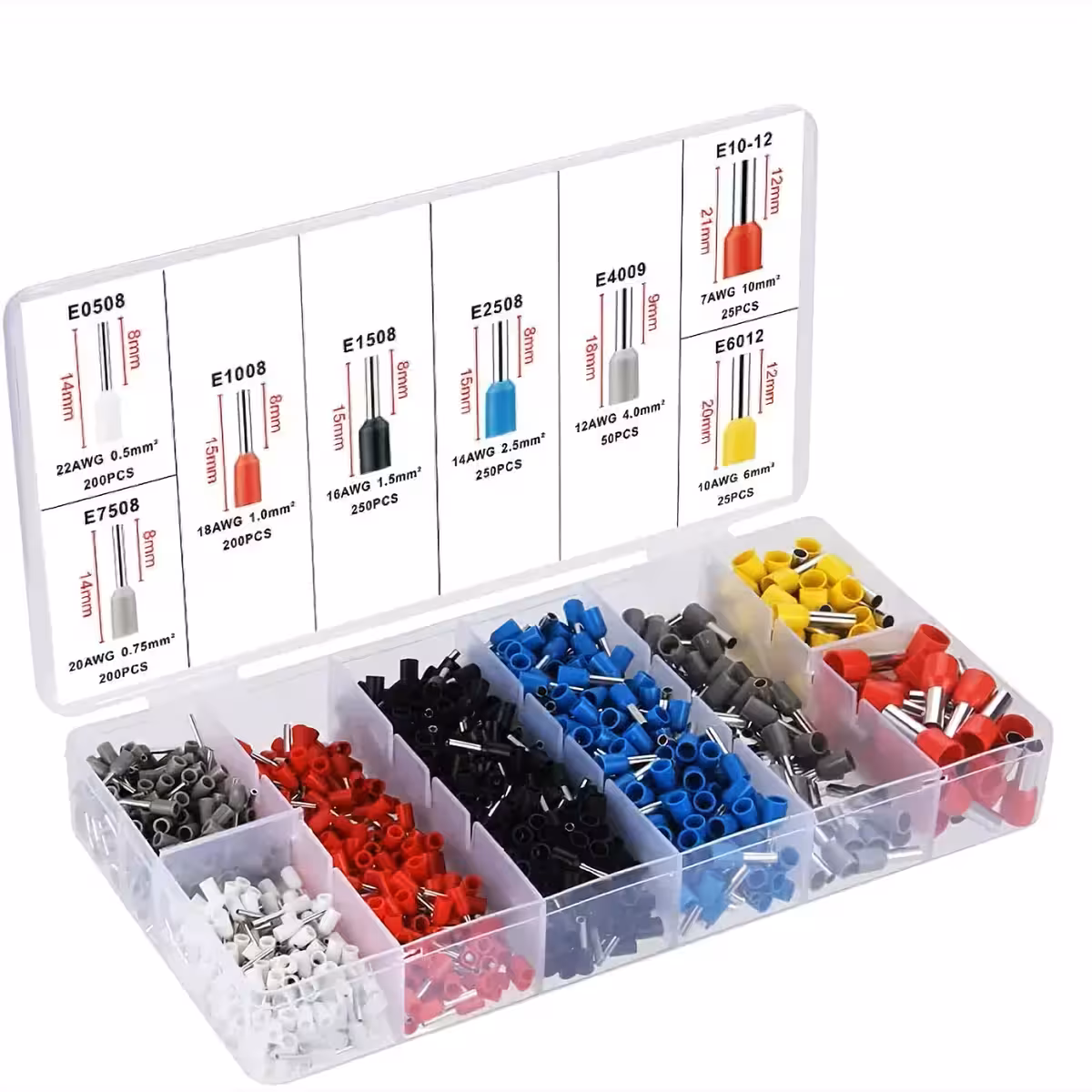 Set uključuje i 1200 komada izoliranih terminalnih pinova (tubularnih završnih terminala) za višestruke vodiče, idealno za različite presjeke:
