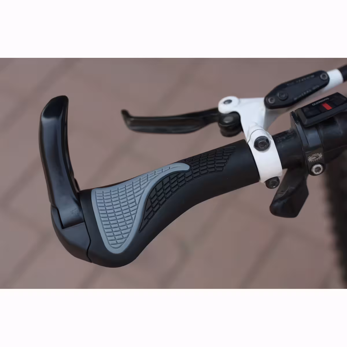 MTB ručke za mountain bike od gume s lock-on prstenovima i ergonomskim rogovima, pogodne za svaki biciklistički ili električni romobil upravljač.