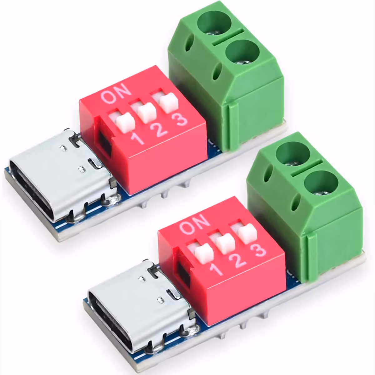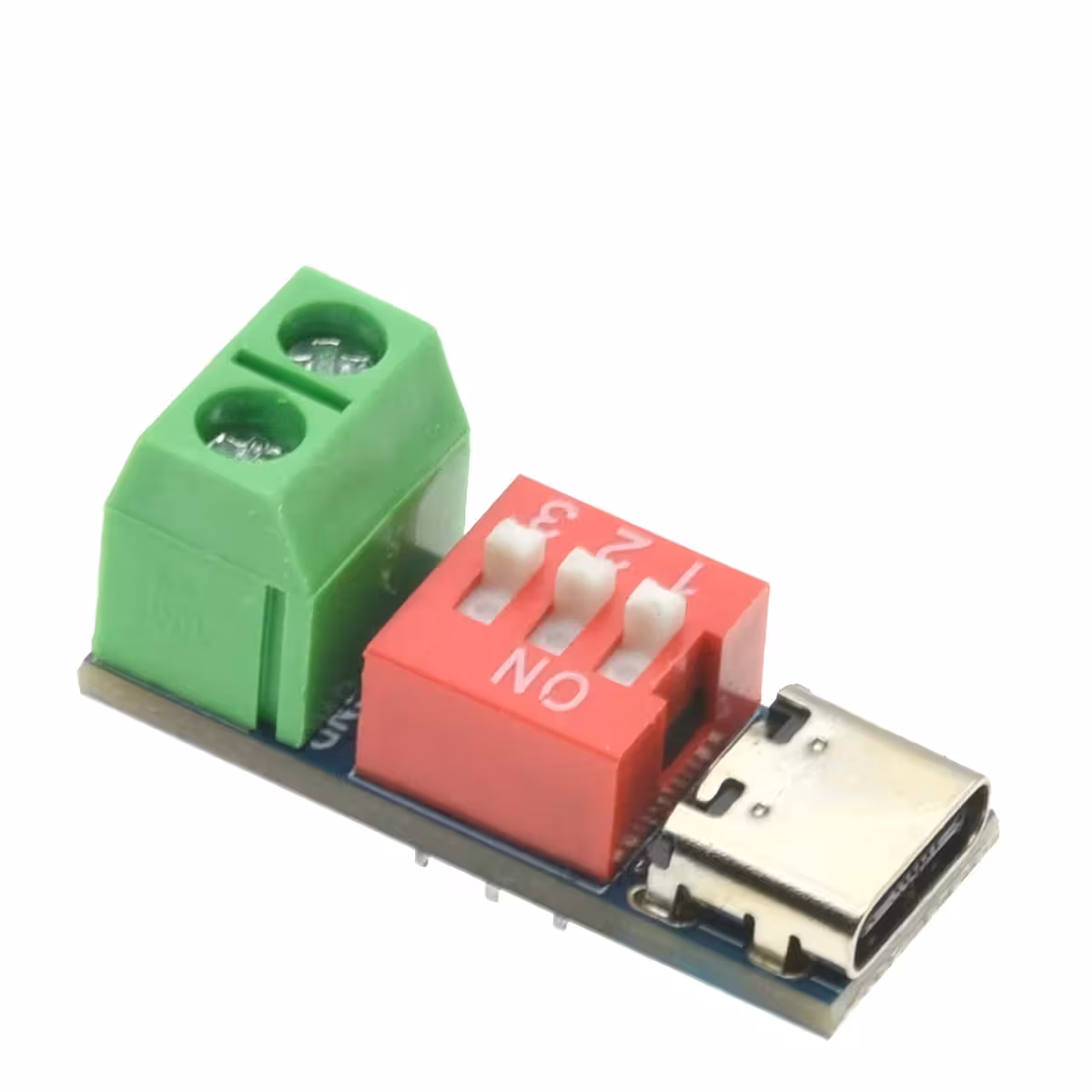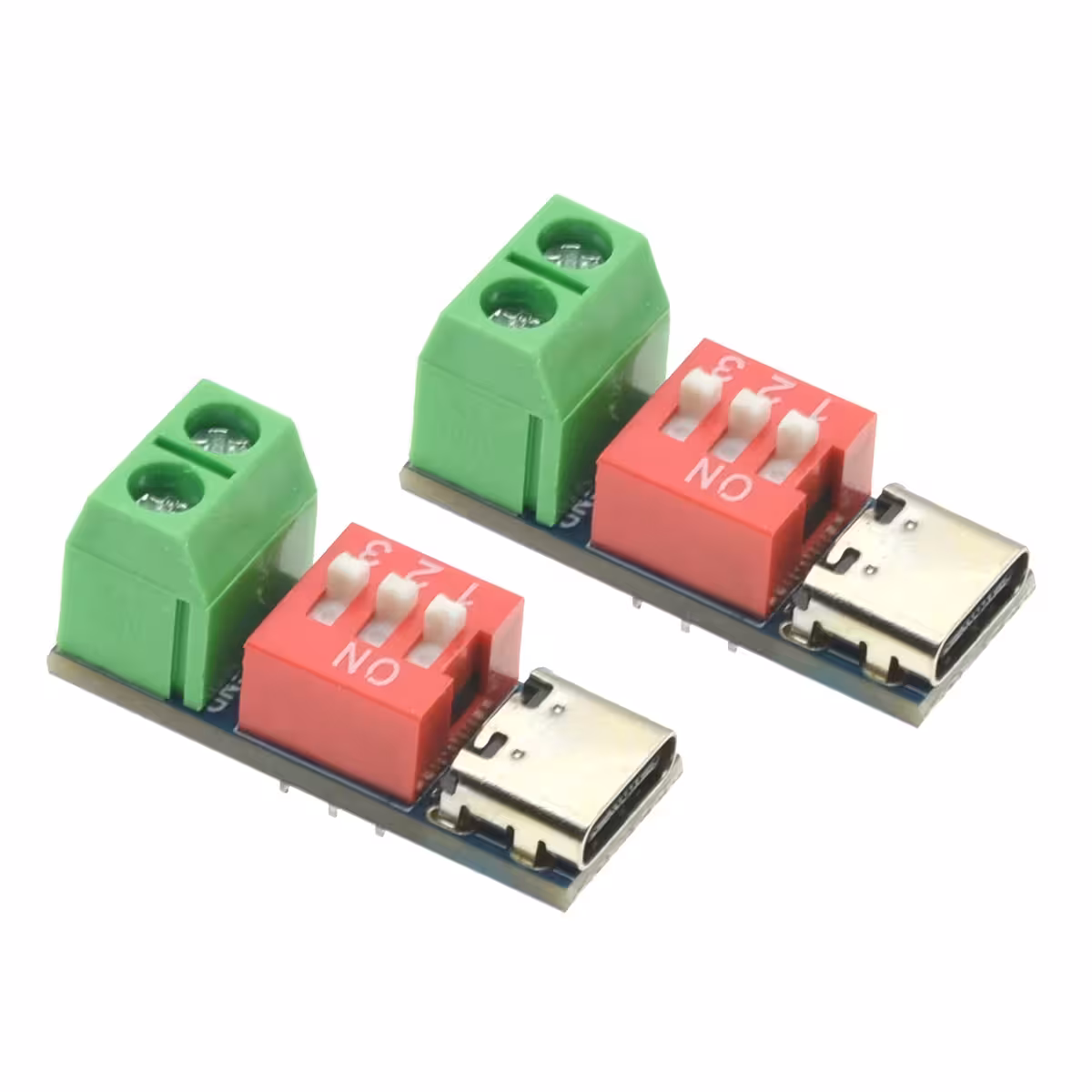 Trebate 12V ili 20V iz USB-C punjača, a ne želite sami izrađivati regulator napona? Ovi USB Type-C PD QC moduli automatski pregovaraju o naponu s izvorom napajanja i isporučuju ga izravno na izlazne pinove. Jednostavno odaberite napon pomoću DIP sklopke, spojite punjač i izmjerite — za manje od minute imate izvor napajanja spreman za vaš projekt.