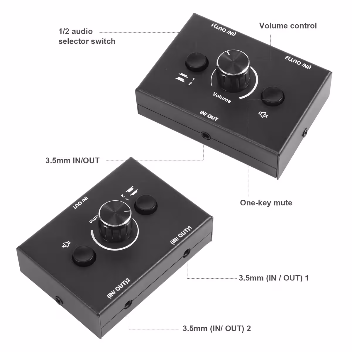 Izrađen od visokokvalitetnog materijala s mat crnom obradom, ovaj stereo HiFi audio prekidač 3,5 mm ima čvrstu, kompaktnu i izdržljivu konstrukciju, savršen za ured, studio, gaming ili svakodnevnu upotrebu.