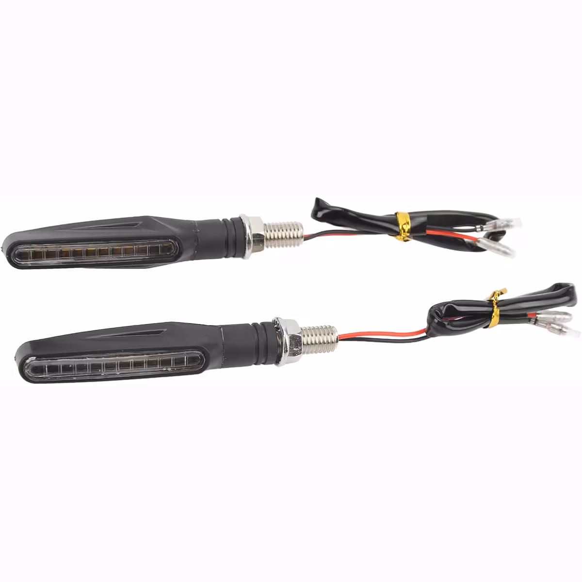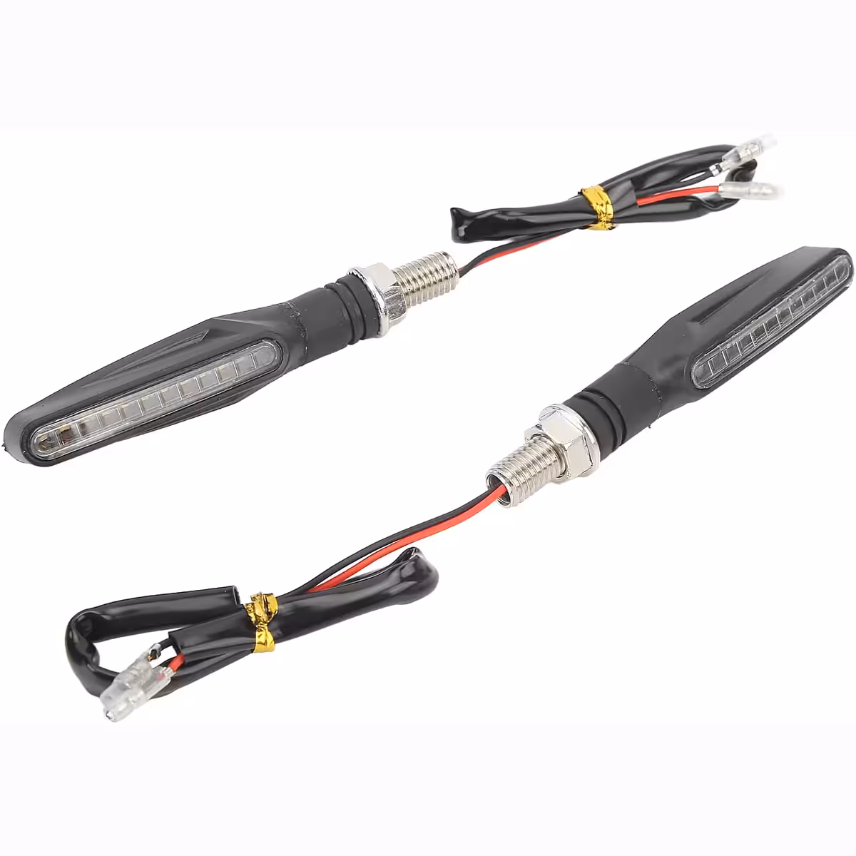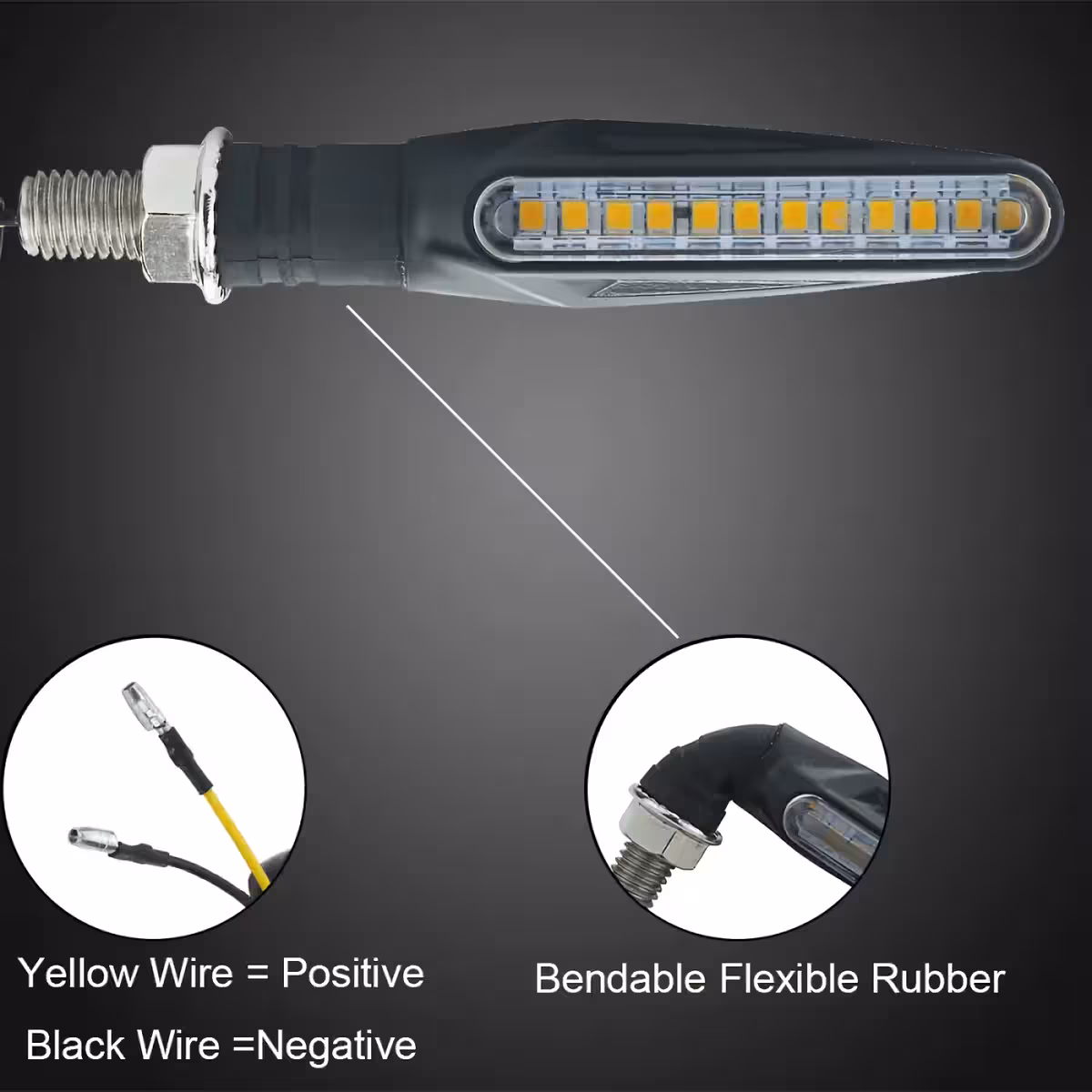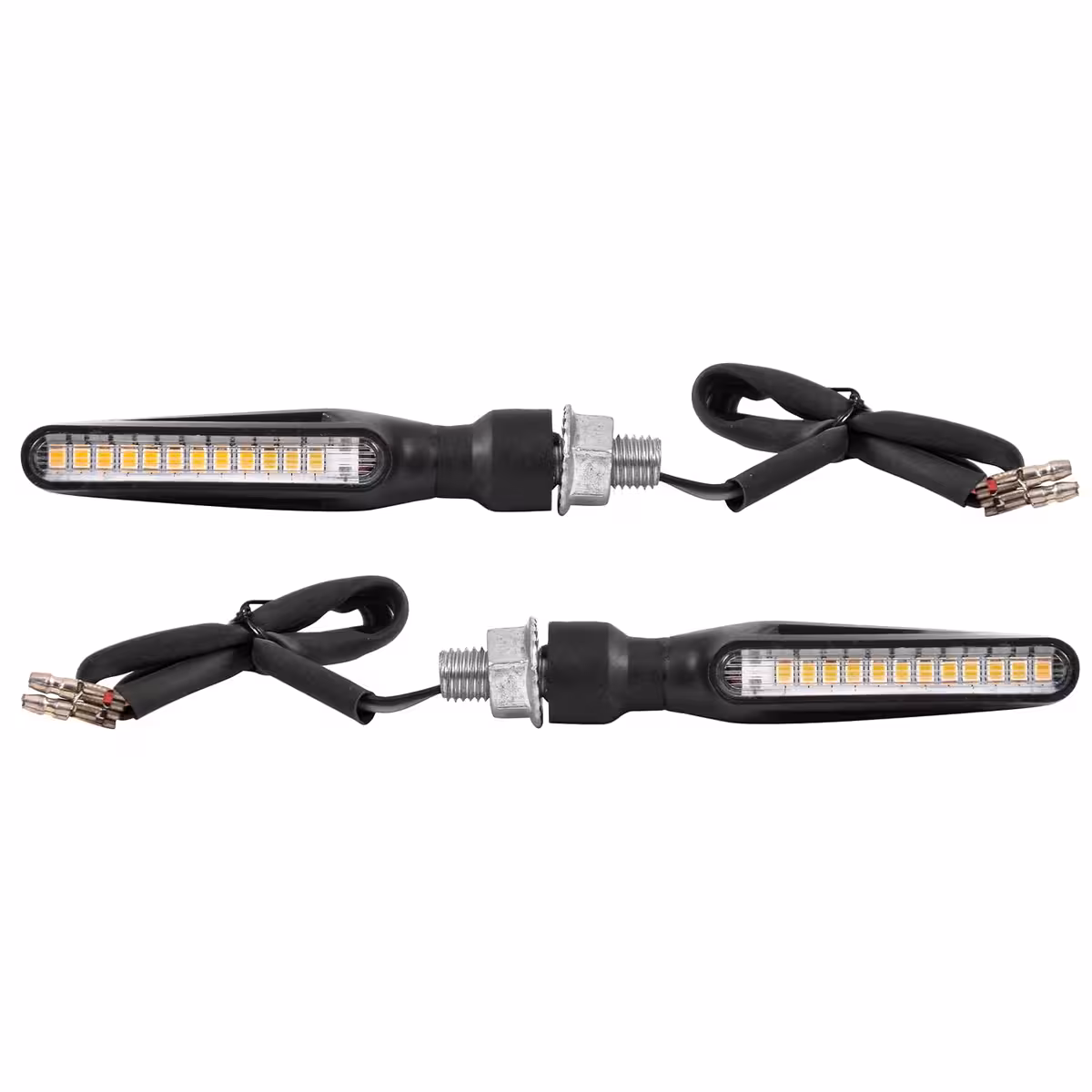 Univerzalni set dinamičnih LED smjernih svjetala s sekvencijalnim efektom, kompatibilan s motociklima, skuterima i ATV-ima. Moderan dizajn s jasnim rubovima i glatkim linijama daje elegantan izgled, dok LED tehnologija osigurava nisku potrošnju energije i jaku svjetlinu za maksimalnu vidljivost.